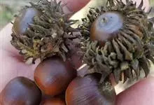 栓皮栎是壳斗科栎属的高大落叶乔木。株高达30米;树皮深纵裂;小枝无毛;叶片卵状披针形或长椭圆状披针形,基部宽楔形或近圆,具刺芒状锯齿;果壳斗杯状,顶端平圆;花期3-4月;果期翌年9-10月。…全部>>