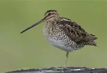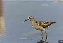 泽鹬:小型涉禽,体长19-26厘米。嘴长,相当纤细,直而尖。颜色为黑色,基部绿灰色,脚细长,暗灰绿色或黄绿色。夏季上体灰褐色具黑色斑,腰白色并向下呈楔形延伸。下体白色,颈、胸具细的黑色纵纹。…全部>>