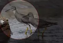 红脚鹬:体长28厘米,上体褐灰,下体白色,胸具褐色纵纹。飞行时腰部白色明显,次级飞羽具明显白色外缘。尾上具黑白色细斑。虹膜黑褐色,嘴长直而尖,基部橙红色,尖端黑褐色。脚较细长,亮橙红色,…全部>>