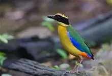 仙八色鸫是雀形目八色鸫科八色鸫属鸟类。雄鸟前额至枕部深栗色,有黑色中央冠纹,眉纹淡黄,背、肩及内侧飞羽辉绿色,飞羽黑色具白翼斑,颏黑褐、喉白,下体淡黄褐色、腹中及尾下覆羽朱红色。雌鸟羽色似雄鸟但较浅淡。…全部>>