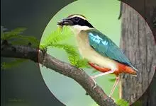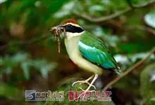 绿胸八色鸫:是雀形目八色鸫科的鸟类,共有12个亚种。体长为16-18厘米,体重65-69克。体型圆胖,尾短,腿长。头黑,上体绿色,两翼深色而具白色斑纹,头顶至后枕深褐,胸及腹部苹果绿,臀亮红。…全部>>