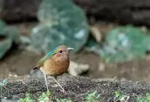 栗头八色鸫又叫锅巴雀,体长为24-26厘米,体重100-135克,是雀形目八色鸫科的鸟类。体型圆胖,尾短,腿长,常在森林底层或低植被中找食无脊椎动物。叫声简单哀婉。…全部>>