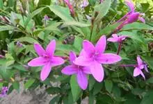 紫云杜鹃 又称大花钩粉草,紫云花。分类:爵床科。分布:斐济岛。常绿灌木,株高约20~50厘米,分枝较多。叶对生,长椭圆形或披针形,顶端渐尖,基部楔形,全缘。花长筒状,腋生,先端5裂 ,紫红色。…全部>>