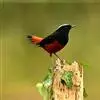 橙胸咬鹃:全长约28厘米。雄鸟头、颈橄榄绿色,上体及中央尾羽栗色;中央尾羽具黑色端,其外侧的2对尾羽黑色,最外3对尾羽基部黑色具白端;翼覆羽有密的黑、白相间横,飞羽黑褐;颏、喉橄榄色,胸橄榄黄,…全部>>