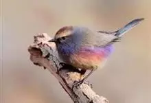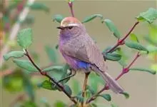 凤头雀莺:小型鸟类。体长9-10厘米,雄鸟呈毛茸茸的紫色和绛紫色,顶冠淡紫灰色,额及凤头白色,尾全蓝。雌鸟喉及上胸白,至臀部渐变成淡紫色,耳羽灰,…全部>>
