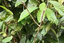 尾尖爬藤榕,攀援灌木,小枝具稀疏柔毛。叶厚纸质,披针形或卵状披针形,干时常皱折,顶端具尾状渐尖,基部宽楔形,叶背网脉明显,蜂窝状。全部>>