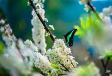 青带凤蝶Graphium sarpedon ,又名青凤蝶,是最普遍的中型凤蝶,飞行速度很快。青带凤蝶的翅膀中央有许多浅蓝色的斑点,很整齐地排列成一条直线。这些斑点由上而下逐渐变大,就像一条青色的带子。全部>>