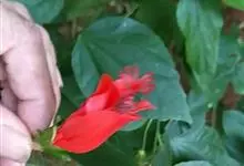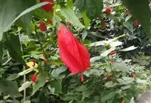 垂花悬铃花是锦葵科、悬铃花属常绿小灌木,外型略似朱槿,但叶片较为狭长浓绿;高30-60厘米,叶片互生,卵形或卵状矩圆形,单叶,有时浅裂,叶形变化较多,叶面具星状毛。花红色,花通常单生于上部叶腋处,下垂,…全部>>