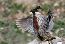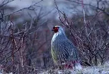 血雉雉科血雉属鸟类,别名血鸡、松花鸡,血雉的雄鸟大覆羽、尾下覆羽、尾上覆羽、脚、头侧、腊膜为红色,故称血雉。其别名甚多,各地皆异。在甘肃,因其胸侧和翅上覆羽沾绿,被称为“绿鸡”;因其羽毛形似柳叶,…全部>>