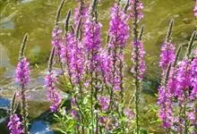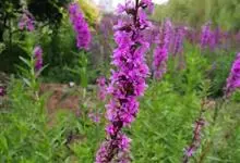 千屈菜是千屈菜科千屈菜属的多年生草本植物;根茎粗壮;叶披针形或宽披针形,无柄;花序簇生,呈聚伞状,花梗及花序梗甚短,花枝似一大型穗状花序,红紫色或淡紫色,苞片宽披针形或三角状卵形;果实为蒴果,扁圆形。…全部>>