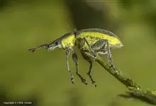 甘薯小象甲是鞘翅目蚁象科甘薯小象甲属昆虫,又称甘薯蚁象、甘薯象、番薯臭虫。成虫除触角、前胸、中胸、足为赤褐色外,鞘翅、腹部为暗蓝色,有金属光泽;体型细长,…全部>>
