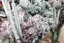 彩春峰是大戟科大戟属肉质植物,彩春峰的肉质茎依品种的不同有暗红色、乳白、淡黄及镶边、斑纹等复色。彩春峰的性状很不稳定,栽培中经常会发生色彩的变异,如暗紫红色肉质茎会长出白色黄色斑块等。…全部>>