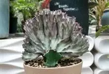 彩春峰是大戟科大戟属肉质植物,彩春峰的肉质茎依品种的不同有暗红色、乳白、淡黄及镶边、斑纹等复色。彩春峰的性状很不稳定,栽培中经常会发生色彩的变异,如暗紫红色肉质茎会长出白色黄色斑块等。…全部>>