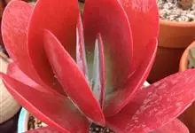 唐印为景天科伽蓝菜属的多年生肉质草本植物。植株中型,株高50厘米,宽20厘米,多分枝;叶片肉质,对生,卵形,全缘,先端钝圆,叶片淡绿色至灰绿色,表面被有厚厚的白粉,光照充足时,叶缘呈红色;圆锥花序,…全部>>