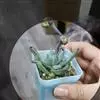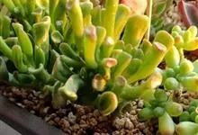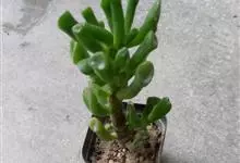 筒叶花月,是景天科青锁龙属的多年生草本植物。植株多分株,灌木状,茎较粗壮,圆柱形,表皮灰褐色;叶片肉质,互生,呈圆筒状,簇生于茎或分枝顶端,叶端呈斜截形,截面为椭圆形;花呈星状,淡白色;花期秋季。…全部>>
