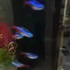 霓虹灯鱼又被称为红绿灯鱼、红莲灯鱼。鱼纲,脂鲤科。原产亚马孙河上游。体长3~4厘米,体形较细,色泽美丽,体上部的绿线,因光线角度不同,有时显出蓝色,与体下部的红线极为协调,又与腹部全红的新红绿灯鱼〔…全部>>