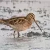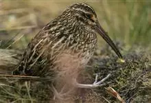 泽鹬:小型涉禽,体长19-26厘米。嘴长,相当纤细,直而尖。颜色为黑色,基部绿灰色,脚细长,暗灰绿色或黄绿色。夏季上体灰褐色具黑色斑,腰白色并向下呈楔形延伸。下体白色,颈、胸具细的黑色纵纹。…全部>>