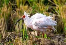 朱鹮是鹈形目鹮科朱鹮属的鸟类动物。其雄鸟通体白色,羽干及两翅与尾等均沾染粉红色;颈项上有很多长矛状羽毛,形成羽冠,耸立时非常夺目;嘴长而向下曲,呈黑色,先端朱红,脚的裸露部分亦呈亮红色。雌鸟羽色略同,…全部>>