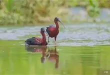 彩鹮:是鸟纲、鹮科、彩鹮属的鸟类。体长48-66厘米,翼展80-95厘米,体重485-580克。是深栗色带闪光的鹮,看似大型的深色杓鹬,上体具绿色及紫色光泽;虹膜褐色;嘴近黑色;脚绿褐色;脸部裸露,…全部>>
