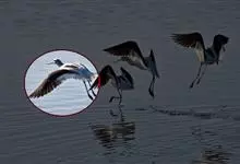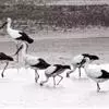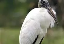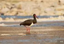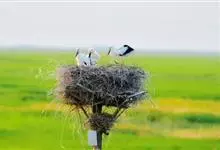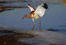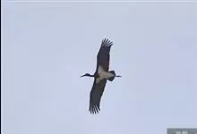 黑头鹮鹳:大型涉禽。体长102厘米,翼展150-175厘米,体重2050-2640克。寿命10年。嘴长而粗壮,飞时头颈伸直。雌雄相似。成鸟上体白色,下体白色。翼下覆羽有黑色横带,具绿色光泽和白色羽缘。…全部>>