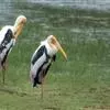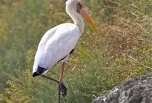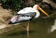 彩鹳:鹳科、鹮鹳属的鸟类。体长93-102厘米,体重2-3.5千克。橙黄色的嘴粗而长,但嘴尖稍微向下弯曲。脚为红色,也特别长,胫的下部裸出。橙色的头部赤裸无羽,繁殖期变为红色。体羽主要为黑色和白色,…全部>>