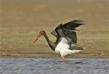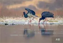 黑鹳是鹳形目鹳科鹳属鸟类,俗称乌鹳、钢鹳、老鹤。黑鹳头、颈和脊均呈黑褐色,故名黑鹳。黑鹳上体羽黑色、并带有绿紫色金属光泽,胸腹部羽白色;嘴、腿均红色;两性相似;成鸟嘴长而直,基部较粗,…全部>>