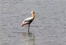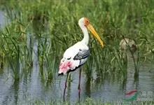 彩鹳:鹳科、鹮鹳属的鸟类。体长93-102厘米,体重2-3.5千克。橙黄色的嘴粗而长,但嘴尖稍微向下弯曲。脚为红色,也特别长,胫的下部裸出。橙色的头部赤裸无羽,繁殖期变为红色。体羽主要为黑色和白色,…全部>>