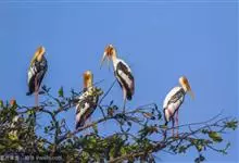 黑头鹮鹳:大型涉禽。体长102厘米,翼展150-175厘米,体重2050-2640克。寿命10年。嘴长而粗壮,飞时头颈伸直。雌雄相似。成鸟上体白色,下体白色。翼下覆羽有黑色横带,具绿色光泽和白色羽缘。…全部>>