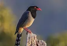 红嘴蓝鹊,别名山鹊、长尾鹊,是鸦科蓝鹊属的一种观赏性较强的大型鸣禽。该物种为体长54~65cm,头、颈、喉和胸黑色,头顶至后颈有一块白色至淡蓝白色或紫灰色块斑,其余上体紫蓝灰色或淡蓝灰褐色。尾长呈凸状,…全部>>