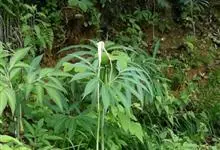 天南星,又名狗爪半夏、半边莲、南星等,是天南星科天南星属下的一种多年生草本植物。块茎扁球形,叶常单片,鸟足状分裂,叶柄圆柱形,粉绿色。花冠粉绿色,佛焰苞管部圆柱形,粉绿色。肉穗花序两性和雄花序单性,…全部>>