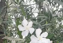 白花夹竹桃是夹竹桃科、夹竹桃属植物夹竹桃的栽培品种。常绿直立大灌木,枝条灰绿色;嫩枝条具稜,被微毛,老时毛脱落。叶3-4枚轮生,下枝为对生,叶面深绿,叶背浅绿色;侧脉纤细平行与中脉成直角;叶柄扁平,…全部>>
