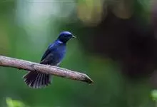 小仙鹟:体长11-13厘米,是一种深色鹟。雄鸟深蓝,脸侧及喉黑,臀白,前额、颈侧及腰为闪辉蓝色。与大仙鹟的区别在体型较小,胸蓝色,臀白色。雌鸟褐色,翼及尾棕色,颈侧具闪辉蓝色斑块,喉皮黄,项纹浅皮黄。…全部>>
