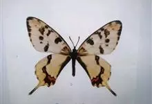不丹褐凤蝶Bhutanitisludlowi Gabriel 是鳞翅目凤蝶科的昆虫。 稀少而美丽,是不丹的国蝶,被称为“高山美人”。是褐凤蝶属中最美丽大型者。四翅狭长,背景色为褐色,前翅有七条黄白色…全部>>