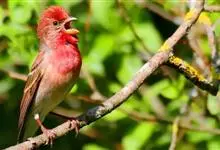 普通朱雀是雀形目雀科朱雀属鸟类,又名红朱雀、马料、青麻料。雄鸟上体红色,下体淡红色;头部、喉部、胸部及腰部亮红色;背部褐色染红色;两翼及尾黑褐色,羽缘染红色。雌鸟上体橄榄褐色,下体近白色,…全部>>