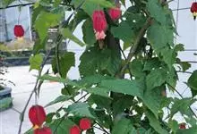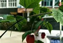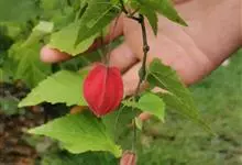红萼苘麻是锦葵科、苘麻属常绿软木质灌木,叶绿色,长5-10厘米,心形,叶端尖,叶缘有钝锯齿,有时分裂,有细细的叶柄;叶互生,掌状叶脉;花单生于叶腋,具长梗,下垂;花萼红色,半套着大约4厘米长的花瓣,…全部>>