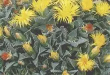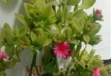 冰叶日中花,是番杏科日中花属的一年生或二年生草本植物。叶互生,卵形或长匙形,基部近心形,抱茎,边缘波状;花淡玫瑰红或带白色,近无梗。冰叶日中花在嫩绿色的叶面和嫩茎上长着密密麻麻的透明囊状细胞,…全部>>