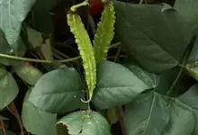 扁豆 Sweet)是豆科扁豆属多年生缠绕藤本植物,又名鹊豆、沿篱豆、藤豆等。全株几无毛,茎长可达6米。羽状复叶具3小叶;托叶基着,叶片披针形;小托叶线形,小叶宽三角状卵形,宽与长相等,…全部>>