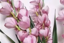 兰花:附生或地生草本,叶数枚至多枚,通常生于假鳞茎基部或下部节上,二列,带状或罕有倒披针形至狭椭圆形,基部一般有宽阔的鞘并围抱假鳞茎,有关节。总状花序具数花或多花,颜色有白、纯白、白绿、黄绿、淡黄、…全部>>