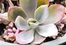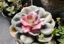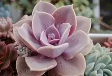 紫珍珠是景天科石莲花属的多年生肉质草本植物。植株中小型;叶片肉质,匙形,呈莲座状紧密排列;叶片粉紫色,叶缘呈粉白色,光照充足时颜色亮丽,不足时叶色会呈现深绿色或灰绿色,叶面光滑,被轻微白粉,…全部>>