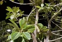 大果榕是桑科榕属的小乔木,株高可达10米;幼枝被柔毛;叶互生,宽卵状心形或近圆形;雄花无梗、匙形、花丝长,雌花生于雌株榕果内,子房白色;榕果簇生于树干基部或老茎短枝上、扁球形或陀螺形,…全部>>
