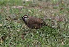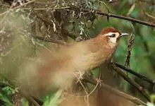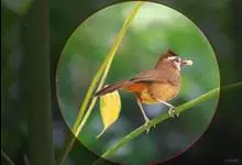 白颊噪鹛是雀形目噪鹛科噪鹛属鸟类,又称土画眉、小画眉、小噪鹃。成鸟额至头顶栗褐色,长眉纹、眼先和颊纹棕白色,眼后至耳羽深褐色,…全部>>