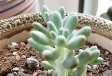 乙女心是景天科景天属的多肉植物,原产墨西哥。多年生亚灌木,茎叶肉质,株高5-30厘米。叶片簇生于茎顶,圆柱状,淡绿色或淡灰蓝色,叶先端具红色,叶长3~4厘米。花小,黄色。春秋为生长季,…全部>>