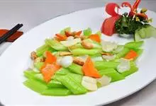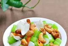 西芹炒腰果是一道由西芹,熟腰果,胡萝卜等做成的美食。全部>>