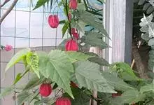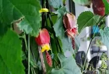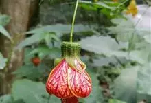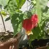 红萼苘麻是锦葵科、苘麻属常绿软木质灌木,叶绿色,长5-10厘米,心形,叶端尖,叶缘有钝锯齿,有时分裂,有细细的叶柄;叶互生,掌状叶脉;花单生于叶腋,具长梗,下垂;花萼红色,半套着大约4厘米长的花瓣,…全部>>