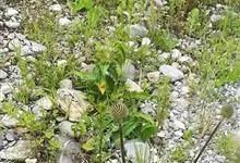 磨盘草 Sweet),又名:金花草、唐挡草。一年生成多年生、直立、分枝,亚灌木状草本,高0.5~2.5米,全部皆被灰色短柔毛。生于砂地、旷野或路旁。果为倒圆形似磨盘,直径约1.5厘米,黑色,…全部>>