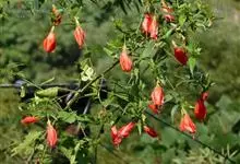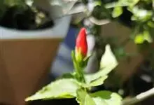 垂花悬铃花是锦葵科、悬铃花属常绿小灌木,外型略似朱槿,但叶片较为狭长浓绿;高30-60厘米,叶片互生,卵形或卵状矩圆形,单叶,有时浅裂,叶形变化较多,叶面具星状毛。花红色,花通常单生于上部叶腋处,下垂,…全部>>