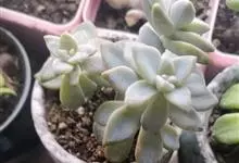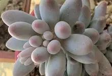 星美人是景天科、厚叶莲属多年生多浆肉质草本植物。植株具直立的短茎。叶12-20片互生,排列呈延长的莲座状,肉质,倒卵形,长2-4厘米,宽2-2.5厘米,厚2厘米,先端平滑钝圆,…全部>>
