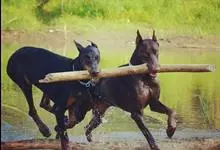 杜宾犬是一种十分凶猛的犬种,主要担当军、警工作,经过训练后,可成为搜索犬、狩猎犬和牧羊犬。杜宾犬性格活泼、警惕、坚定、机敏、勇敢而顺从。另一方面,杜宾犬胆大而坚决,好撕咬,具备一定的攻击性。…全部>>