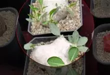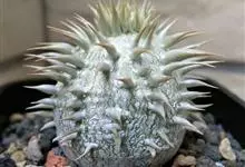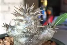 惠比须笑是夹竹桃科棒捶树属多年生肉质植物。根茎不规则膨大,肉质,内含大量水分,外皮褐色至灰色,具不规则突起和皮刺。叶长椭圆形,长3cm— 5cm,宽约1cm。深绿色,叶柄直接着生于根茎突起部位。…全部>>