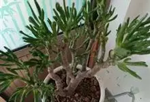 筒叶花月,是景天科青锁龙属的多年生草本植物。植株多分株,灌木状,茎较粗壮,圆柱形,表皮灰褐色;叶片肉质,互生,呈圆筒状,簇生于茎或分枝顶端,叶端呈斜截形,截面为椭圆形;花呈星状,淡白色;花期秋季。…全部>>